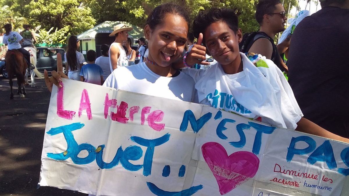 Après une pause déjeuner au coeur de l'animation place Tarahoi, les élèves ont rejoint la mobilisation organisée pour la Marche pour le climat.