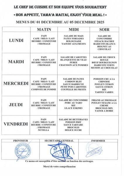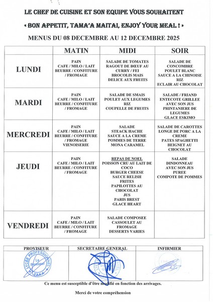 7h00 à 12h30 Mercredi - 7h00 à 13h15 Vendredi