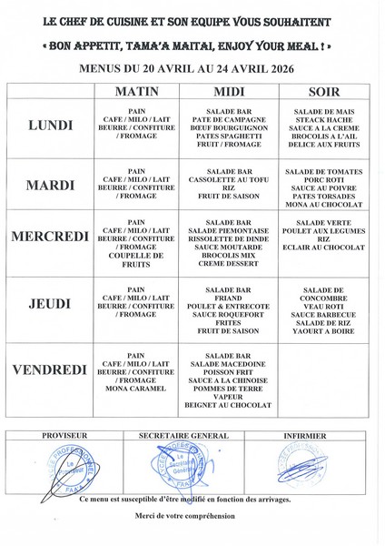 Menus du 20 au 24 avril