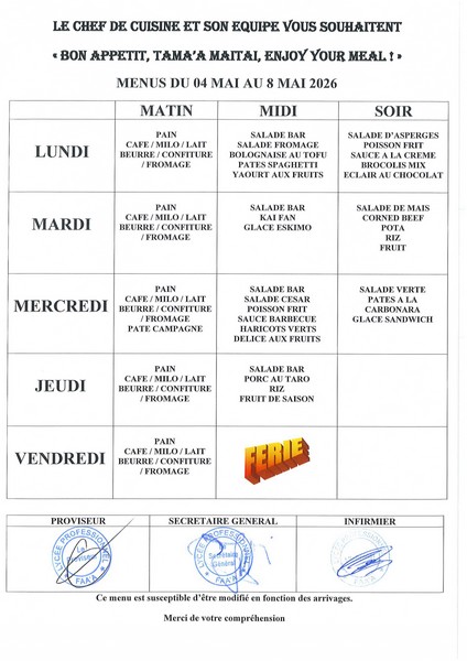 Menus du 4 au 8 mai
