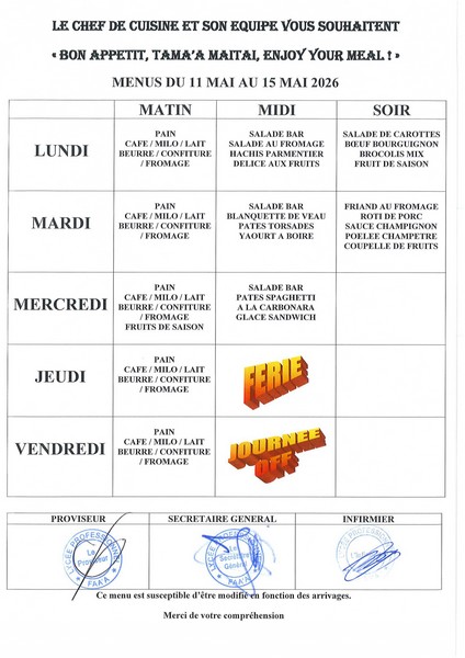 Menus du 11 au 15 mai