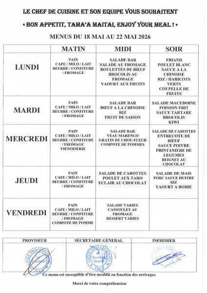 Menus du 13 avril au 22 mai 2026