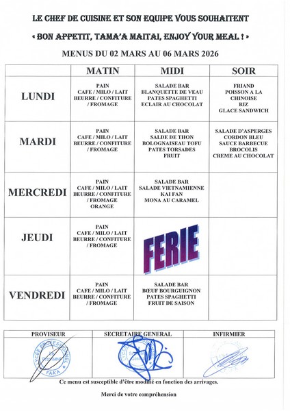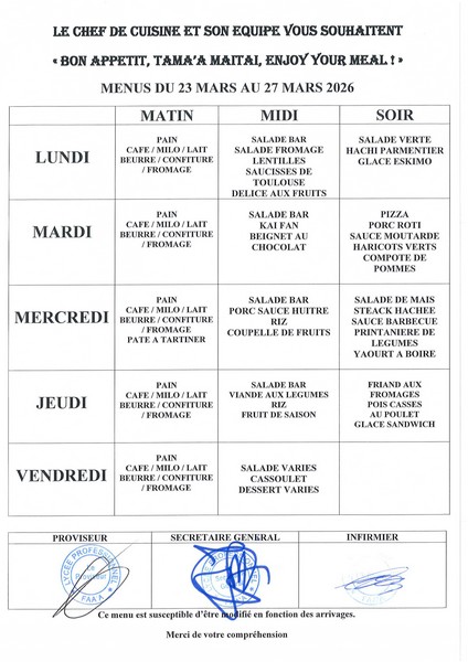 Menus du 23 fevrier au 27 mars 2026 27-02-2026 par Administrateur Menus du 23 au 27 fevrierMenus du 2 au 6 marsMenus du 9 au 13 marsMenus du 16 au 21 marsMenus du 23 au 27 mars