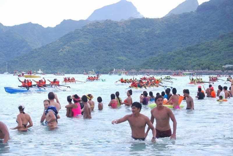 Mais au 2/3 de la course, en passant du côté le plus houleux de l'ile, notre pirogue de lagon, trop basse sur l'eau, a été submergée par les vagues. L'eau s'est engouffrée plus vite que l'on ne pouvait écoper. Le va'a était alors entre deux eaux et ne pouvait plus avancer face au vent contre. Les 6ème et 7ème étapes ont donc été difficiles puisque nous terminons 9ème et 11ème.