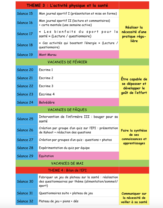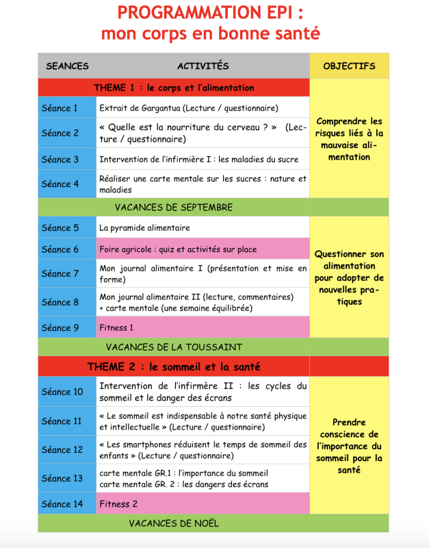 Le programme de travail pour l'EPI Santé de cette année est bouclé.