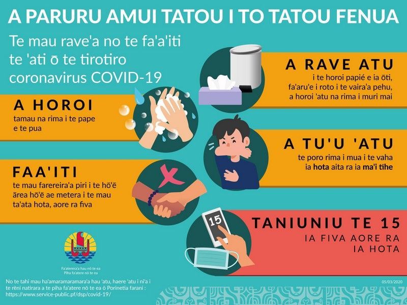 COVID-19 : point de situation n 2020-03-17 par Administrateur Jeudi 12 mars 2020 : point de situation n°1 Ensemble, protegeons le fenuaA paruru amui tatou i to tatou fenua