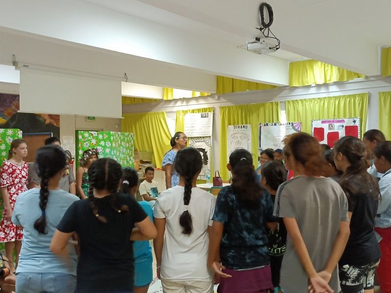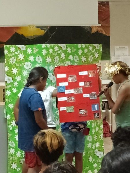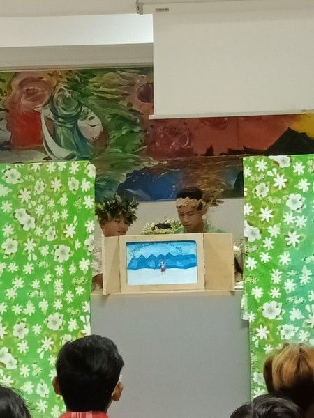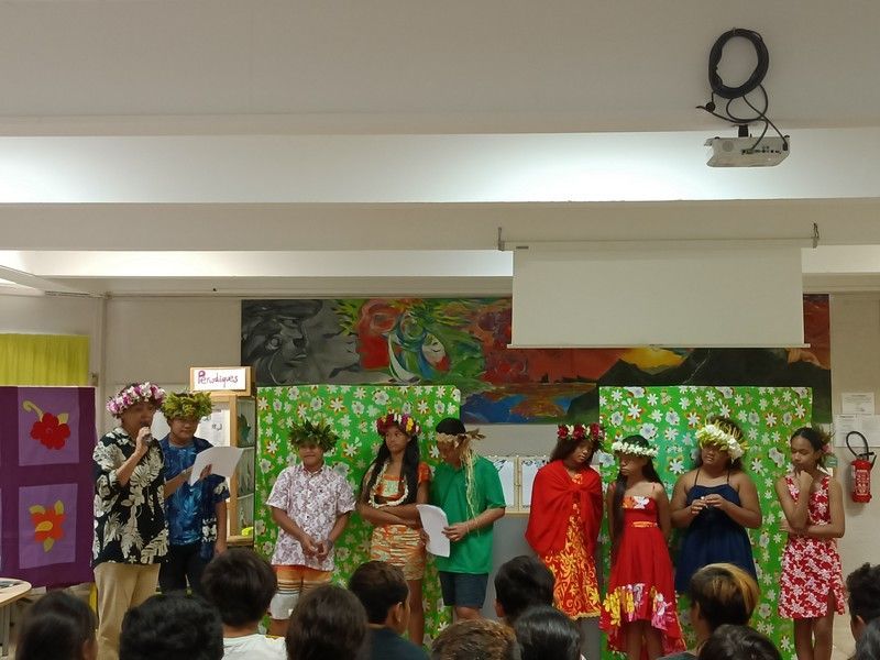 Ce mardi 13 juin, dans le cadre de la liaison école-collège, les élèves de 6A et de 6E ont accueilli au CDI les classes de Mme Ah-Lo et de M.Balducci, deux classes de CM2 de l’école de Pamatai, afin de leur présenter leur kamishibaï et d’assister à la déclamation du orero d’un élève de CM2.