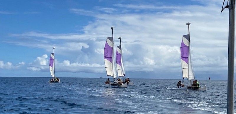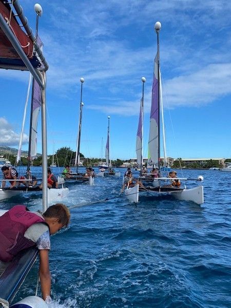 Jeudi 3 juin 2021, il y a eu une sortie voile à Arue pour récompenser les élèves (6ème et 5ème) de l’association sportive. Les élèves ont barré des petits hobycats. Ils ont eu la chance de naviguer au milieu d’un banc de dauphins.