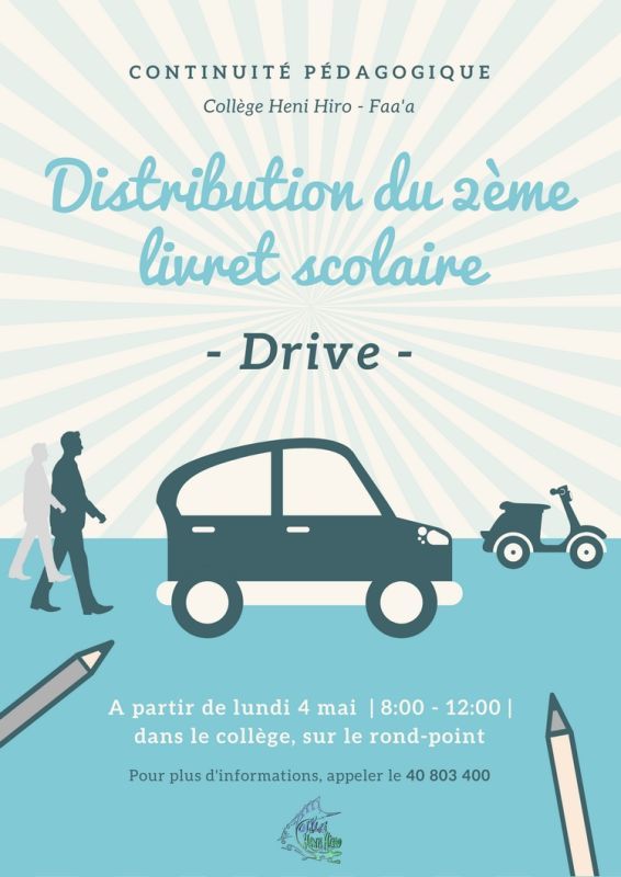 Pour les élèves ne pouvant pas bénéficier correctement de la continuité pédagogique via les applications numériques et via les programmes diffusés à la télévision et la radio, le collège Henri Hiro a mis en place un Drive pour la distribution du livret n°2.