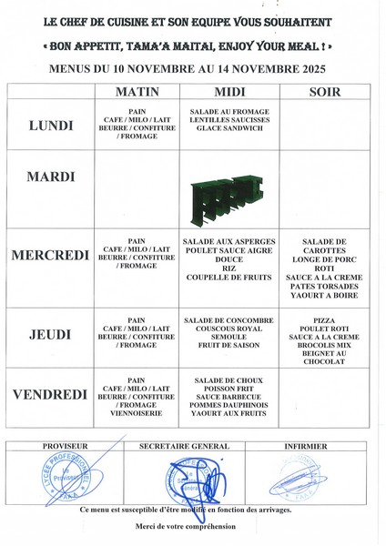 Vous êtes ici : Accueil » Vie du collège » Menus de cantine