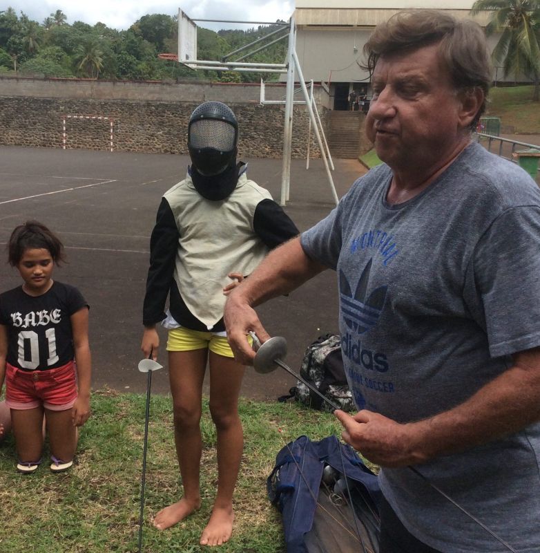 Monsieur Bruno a commencé par leur présenter l'équipement et les armes de l'escrimeur avant de leur expliquer les rudiments de cet art du toucher.