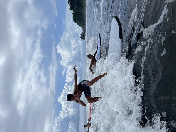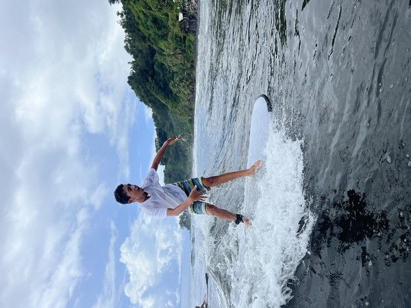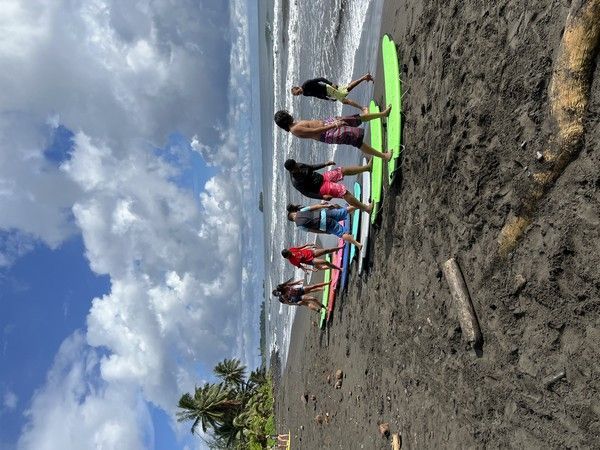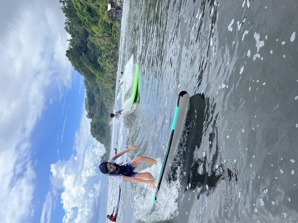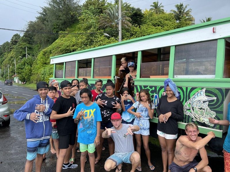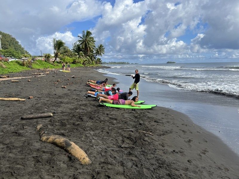 « Le jeudi 3mai 2022, nous avons quitté le collège à 7h pour nous rendre à Mahina afin de pratiquer du surf. Nous sommes arrivés à 9h puis avons débuté notre journée par des exercices d’étirements.